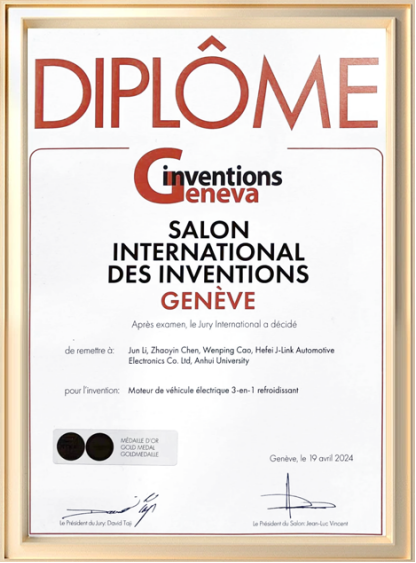 由其自主研制的“最酷的電動(dòng)汽車三合一電驅(qū)動(dòng)系統(tǒng)(Coolest Three-in-One Electric Vehicle Motor Drive)”榮獲第49屆日內(nèi)瓦發(fā)明展金獎(jiǎng),這是交通大類中唯一獲得金獎(jiǎng)的工業(yè)產(chǎn)品,也是安徽省參賽企業(yè)的最好成績(jī)。